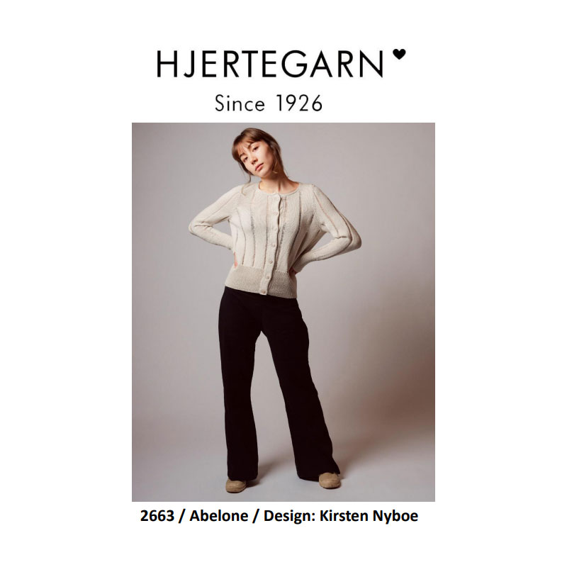 Abelone är en feminin och elegant kofta designad av Kirsten Nyboe, stickad i Lana Cotton 212 (50 % bomull / 50 % merinoull). Modellen stickas nerifrån och upp i slätstickning med ett dekorativt mönster av släppta maskor som skapar ett fint strukturerat uttryck. Koftan har en lätt slim fit-passform och en rund halsringning som avslutas med en stilren I-cordkant.
